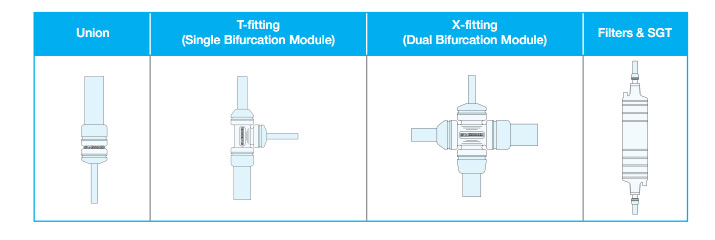 Three standard fluid path connection modules form the basis for BioLink® tubing to tubing connections: